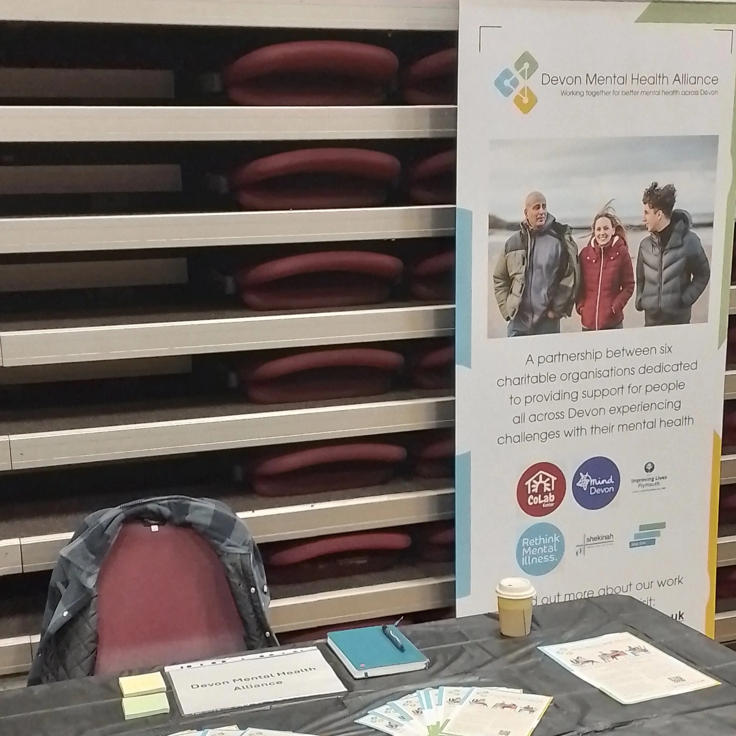 Matt told us about his experience of the day “It was great to be able to support Tiverton DWP Jobcentre with their Moving Forward event. The hall was filled with a variety of services that might be useful for people currently engaging with the Jobcentre around their wellbeing and employment. Representing the Devon Mental Health Alliance, I listened to people’s concerns about the environment, their worries for their children, and the struggles they have had getting support for their mental health. It was great to be able to speak to each of them about the mental health drop-in we run in partnership with CHAT on a Tuesday afternoon, and invite them to come and be a part of that community and support mechanism. I was also able to signpost to a variety of great activities and services being run by other charities, like Step One's Be Well courses, Young Devon's My Way, Exeter Community Initiatives' Transition courses, and local peer support groups like Andy's Man Club.