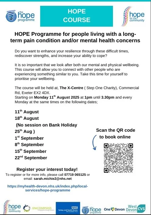 The Help Overcoming Problems Effectively (HOPE) Programme is a free, 6 week self-management programme, bringing people with similar stories together. These 2.5 hours sessions are run by two Recovery Practitioners, Dee Allbrook and Lind Burd. Covering weekly topics that help reduce emotional dysregulation such as sleep disturbance, goal setting, gratitude keeping, dealing with setback, fatigue management and more.